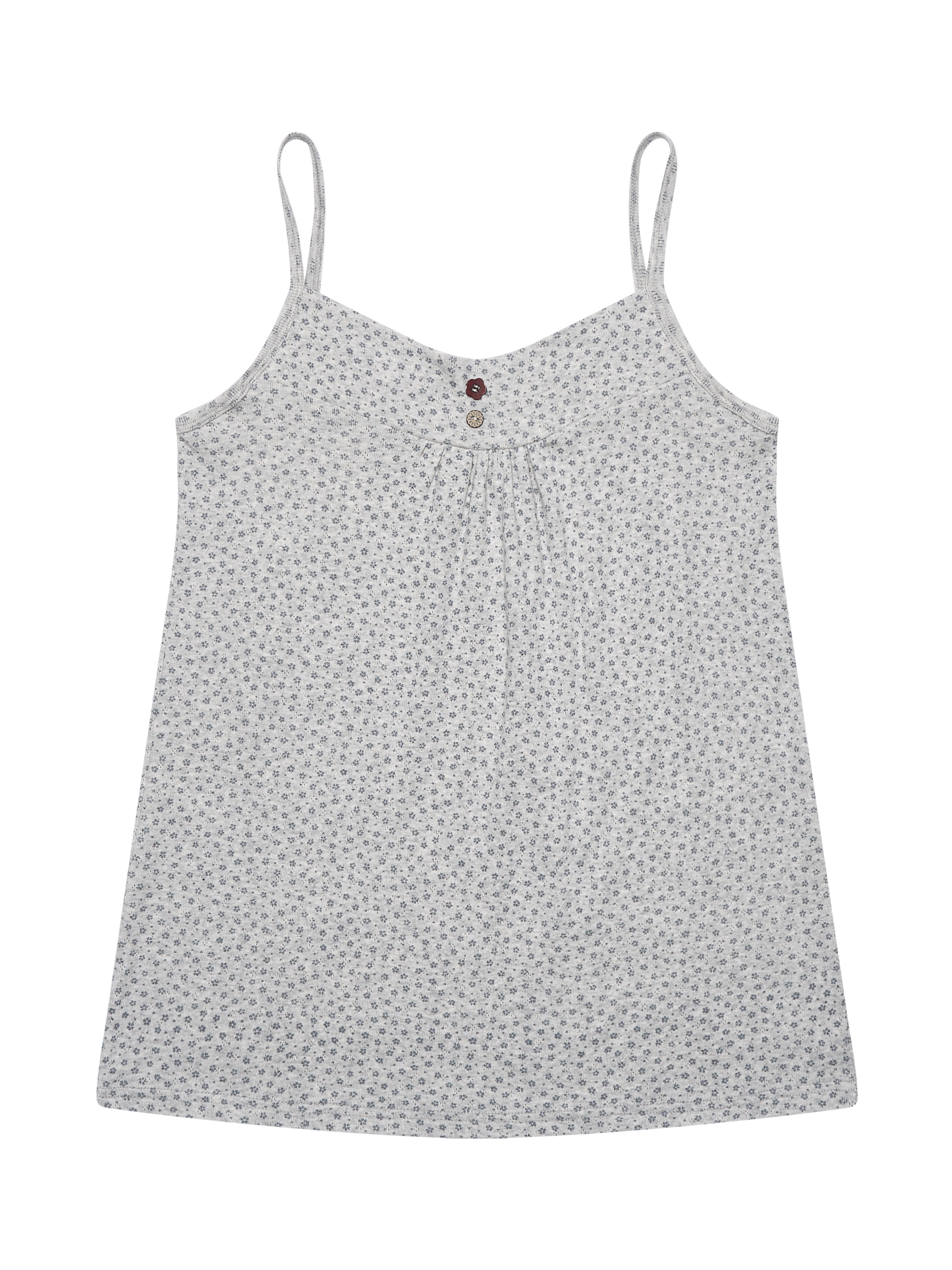 잘게 놓여진 꽃 패턴의 셔링 슬리브리스 탑.