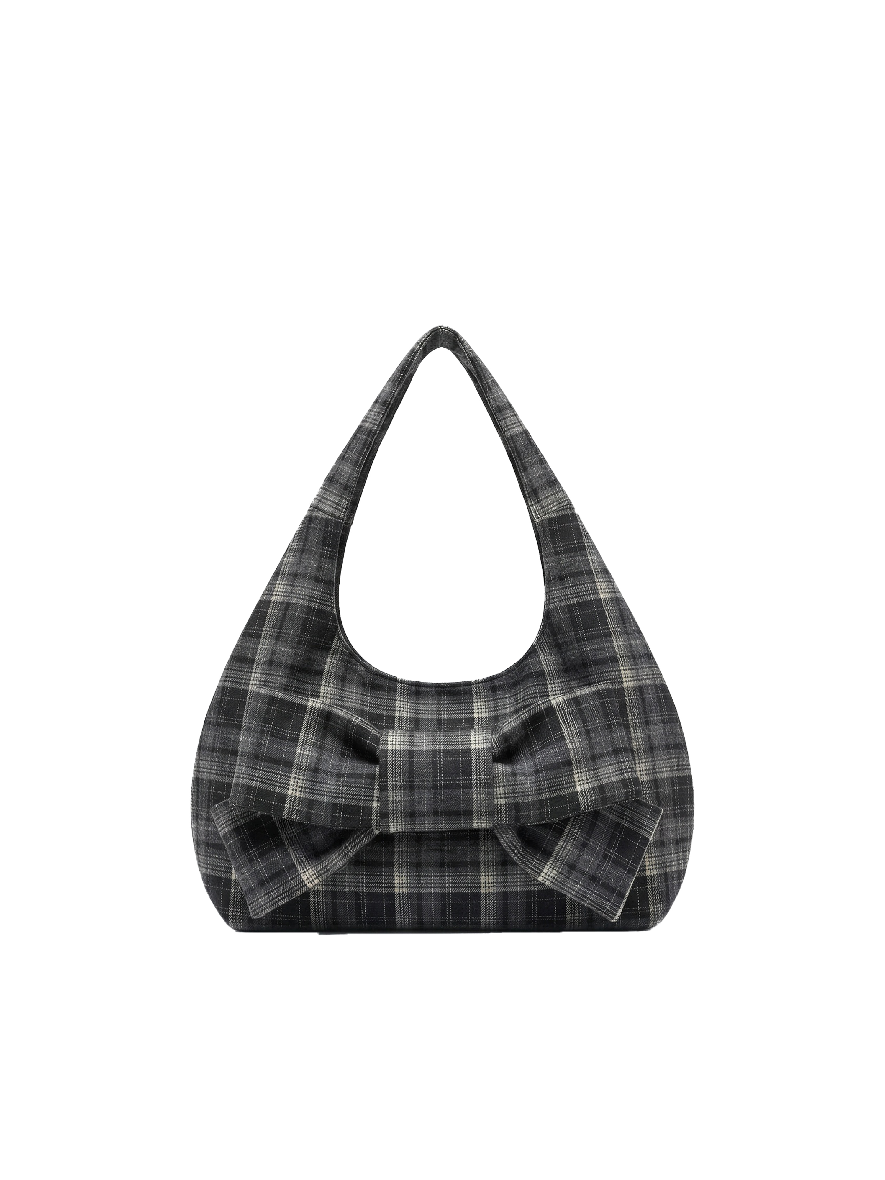 가운데 리본 장식이 달려있고 에는 시오서울 레더 라벨이 부착되어 있어 양면으로 착용 가능.