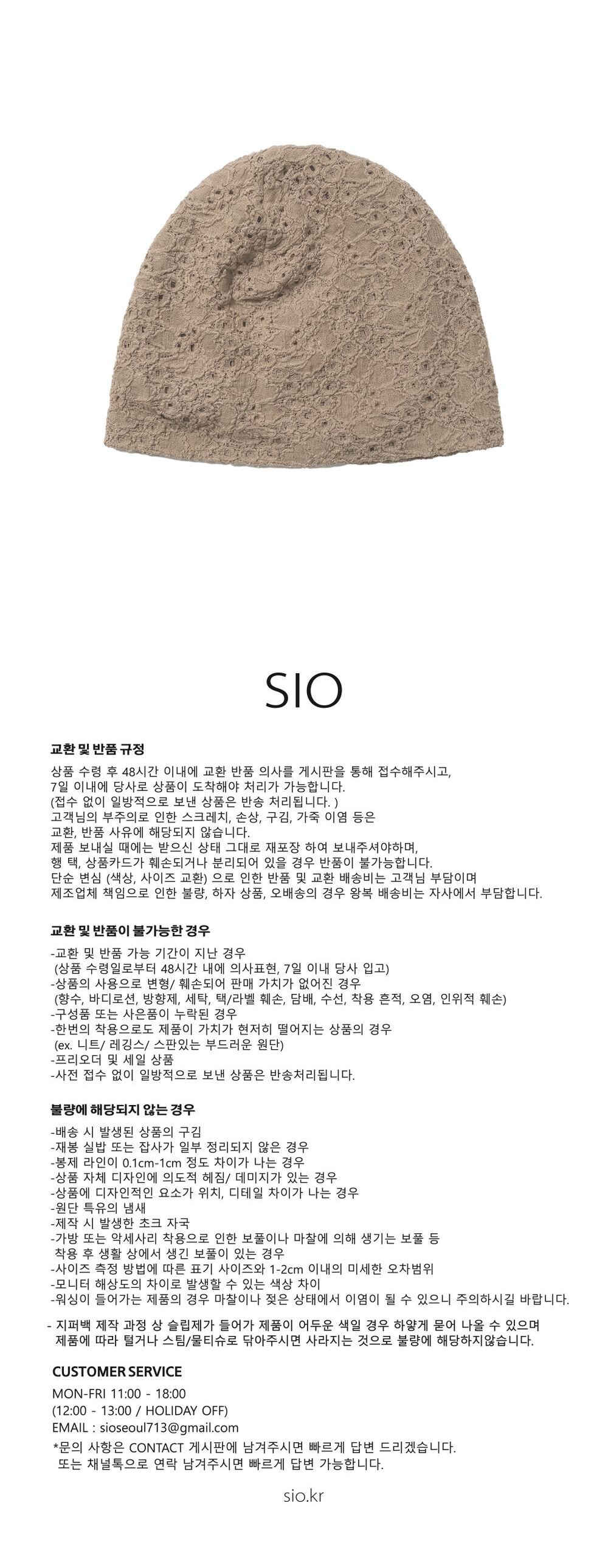 레이스 원단의 셔링 포인트 비니.